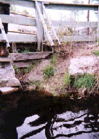 Segment 1: Starting at the Central Street Bridge and heading south down to the railway tracks. This segment starts with a small pool surrounded by residential property with a minimal buffer zone. It quickly becomes very dense with bushes--posing an almost impenetrable thicket of vegetation. After another 30'-40', the stream opens up into a moderately deep (5'), channel of about 5'-10' width surrounded by wetlands/open marsh. The properties on the eastern side appear distant and well protected. As the stream (@ #5), starts to turn eastward, it becomes more