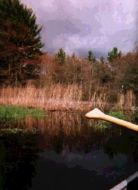 and fall waters. The upper stream is quite narrow and five trees down across the stream meant that we had to portage the canoe several times. We could not make it to Route 27 as the last tree totally blocked passage and there was no dry land to get around.