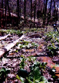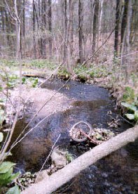 Along the stream is much skunk cabbage. The terminus section at Rte. 2A and Wyndcliffe Drive is characterized by the stream's meandering through marsh grass and is very different from the rest of our segment.