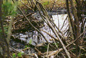 Dams, beavers: Beaver material in pile on right was previously removed from culvert pipe. It has been an ongoing challenge to keep the water flowing freely. NBWL2